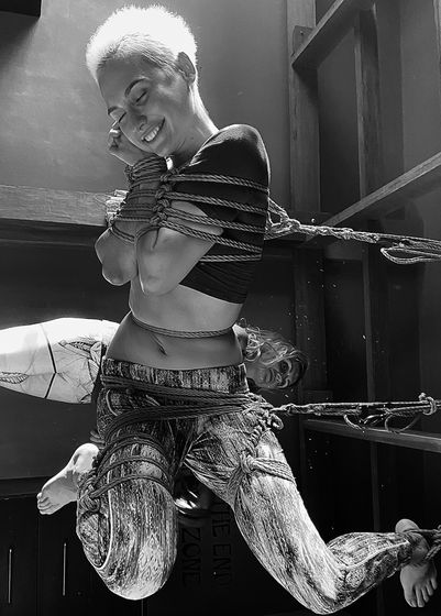 I use ropes to guide my partner into a state of surrender: losing control and feeling. But it’s not about the end result of having someone restrained, but about the process of tying and untying. While doing so, I can non-verbally convey a multitude of messages ranging from “you’re the most precious thing in the universe” to “I’m here to brutally ravish you!” to everything in between, such as strictness or tenderness, air and fire, speeding up or slowing down, neatness or creative mess, relaxing or triggering, while playing on a bed, a floor, or using suspension. My non-verbal cues come across very acutely through the way I tie, while the act of being immobilized makes one give up their own agenda and become open to receive.